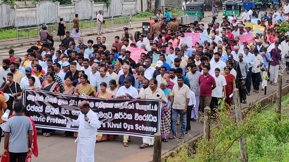 இதன்போது கிவுள் ஓயா திட்டத்திற்கு எதிரான பதாதைகளை மக்கள் தாங்கியிருந்ததுடன் கோசங்களையும் எழுப்பியிருந்தனர்.