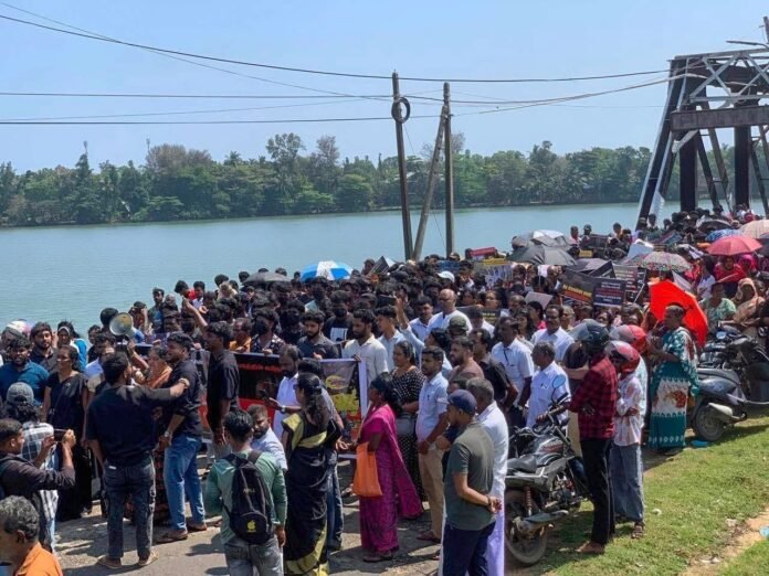 போராட்டம் தற்போது பேரணியாக கிளிநொச்சி நகரத்தை நோக்கி நகர்ந்து கொண்டு இருக்கிறது.