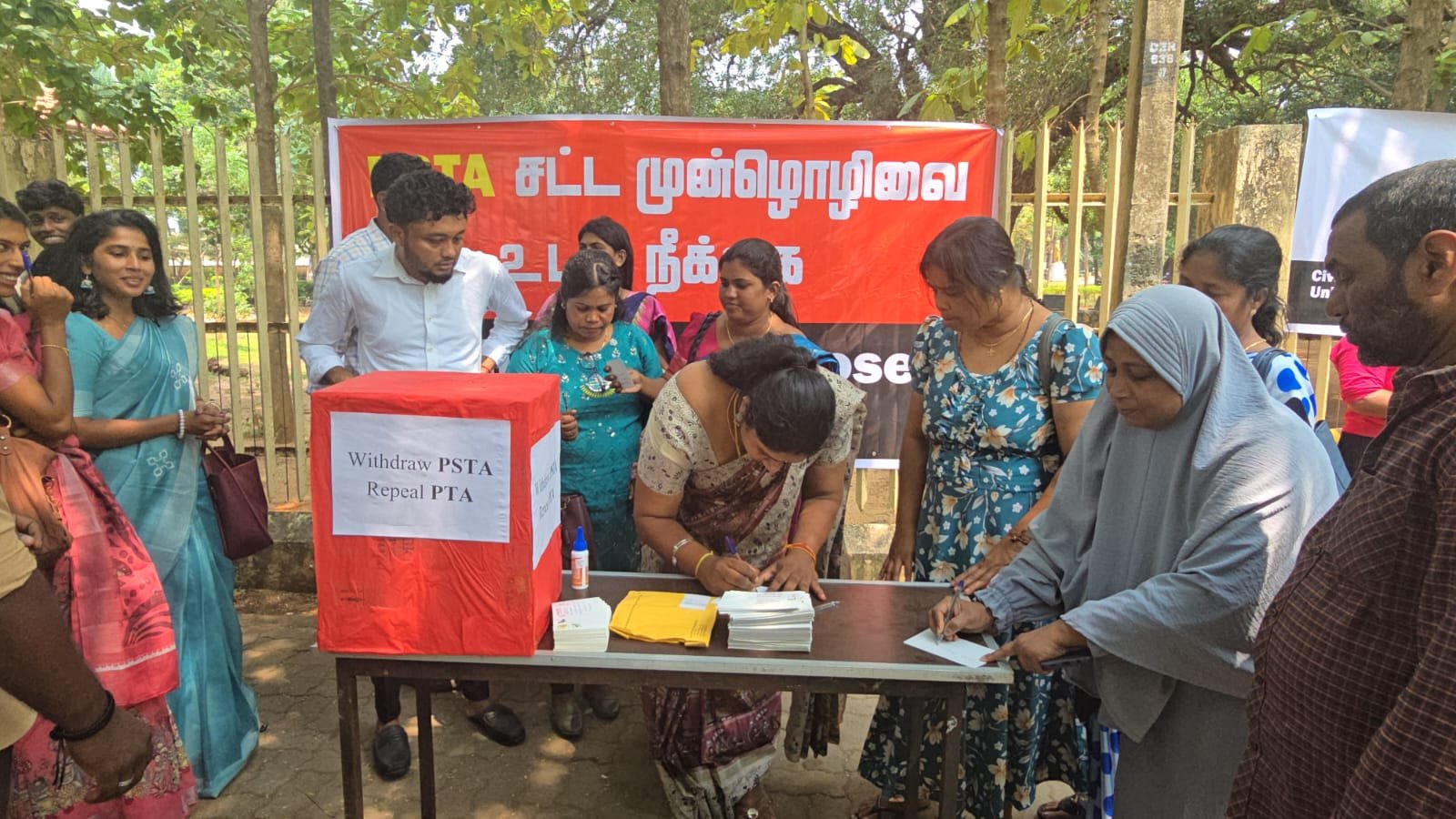 பயங்கரவாதத்தில் இருந்து அரசை பாதுகாக்கும் சட்ட வரைபுக்கு எதிராக மக்களின் கருத்தை திரட்டி நீதி அமைச்சுக்கு அனுப்பும் நடவடிக்கை யாழ்ப்பாணத்தில் முன்னெடுக்கப்பட்டது.